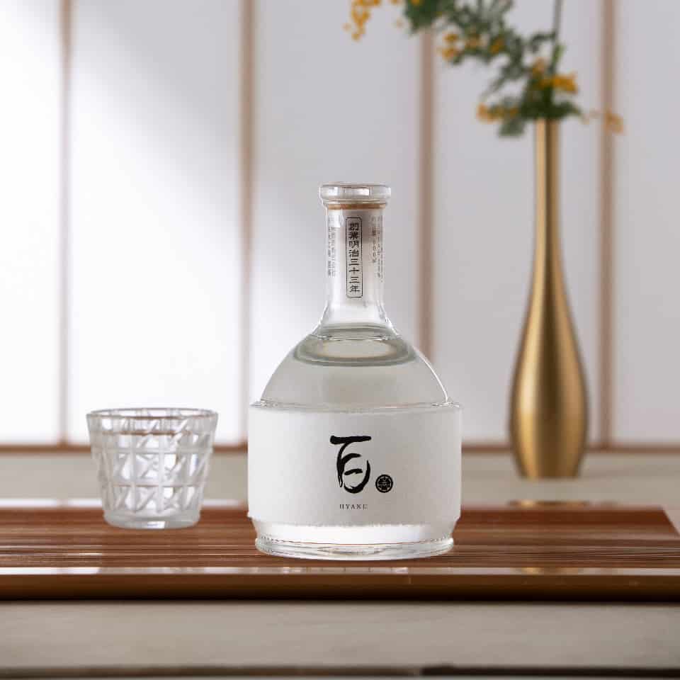 「百」採用日本精品玻璃品牌「HARIO」特製的玻璃瓶線條纖細、兩層光透玻璃,更為這款高等級本格燒酎增添風采。由內而外都像是藝術品。